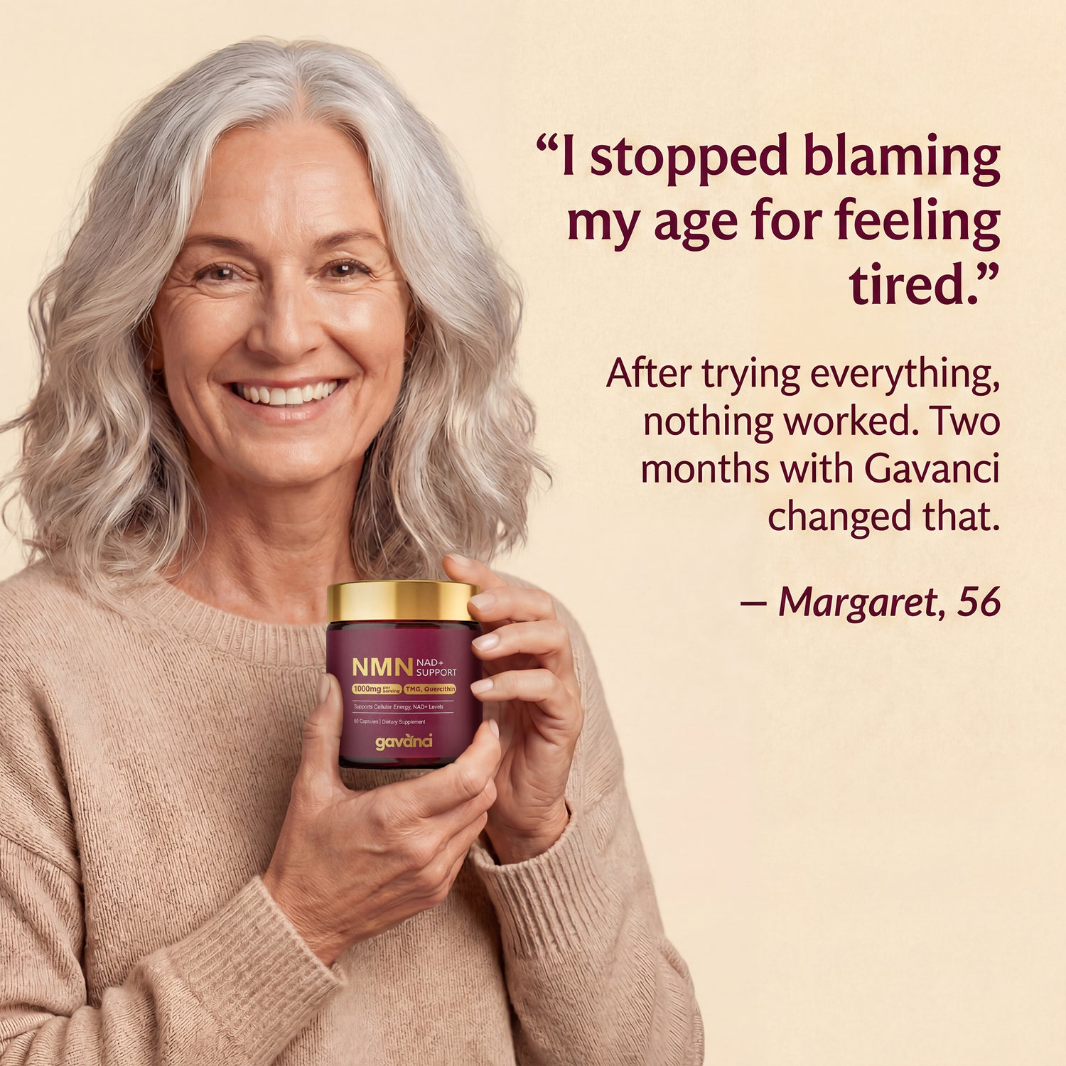 While NMN is known for supporting cellular health overall, this formula is specifically designed to address energy, recovery, and mental clarity. Some women notice improvements in how their skin looks as a side effect of better cellular function, but that's not the primary focus.